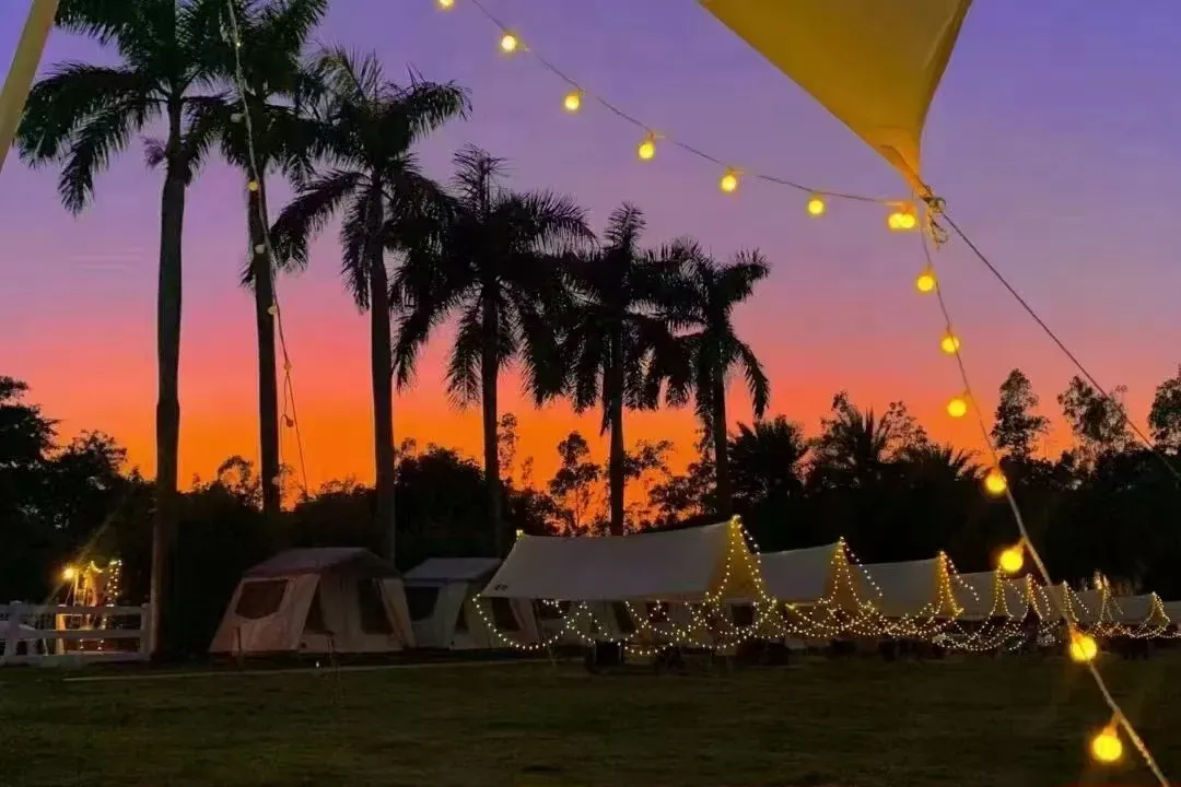 天幕、围炉煮茶、电影,还有各式桌游、秋千蹦床、室内咖啡厅等娱乐设施一应俱全。